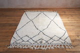 Primrose is a Beni Ourain rug from the middle Atlas mountains. Authentic Beni Ourain rugs are handwoven using a technique honed for decades and high grade natural wool. They are very high quality and tend to last for generations, unlike their machine made counterparts.