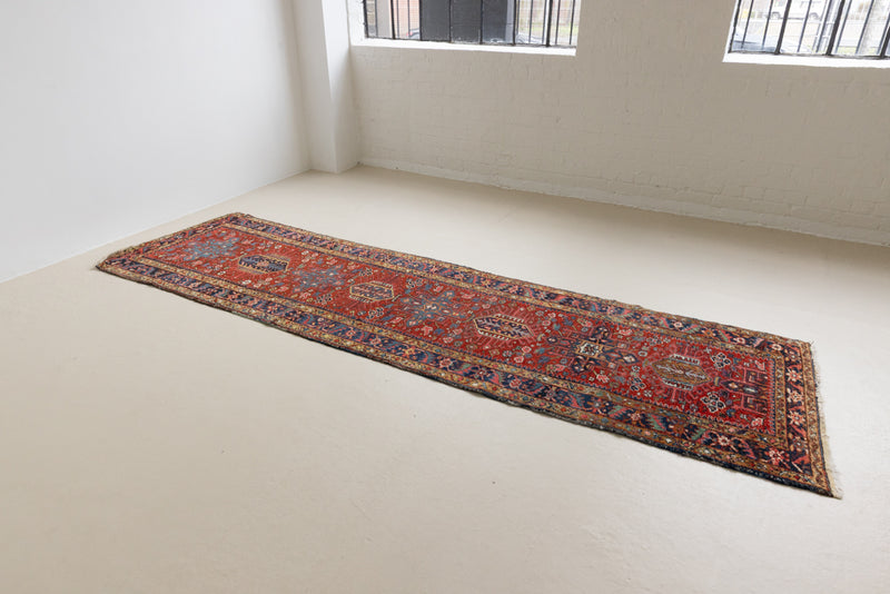 Heriz rugs are some of the most sought after Persian designs and this runner features a classic Heriz design in beautiful red and blue tones.